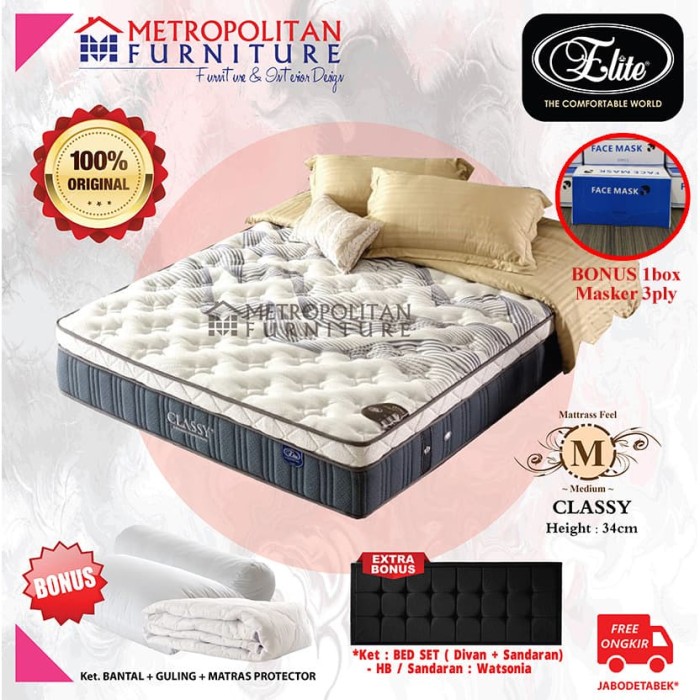 Jual Spring Bed Elite Elegant Murah Dan Bergaransi Spring Bed Bagus from springbedbagus.com Merk kasur yang satu ini sudah sangat terkenal di indonesia, banyak orang yang tertarik untuk membeli kasur yang satu ini karena memiliki banyak keunggulan yang ada di dalamnya. Kami adalah distributor produk elite spring bed daerah surabaya dan sidoarjo khususnya dan area. Tinggi kasur ini bisa mencapai 25 cm sehingga akan terasa lebih empuk dan nyaman. Toko agen resmi jual berbagai merek kasur dan spring bed. Kasur elite, solusi kesehatan tulang belakang anda. Toko jual springbed elite di malang harga murah diskon promo men jual type elite springbed terbaik bagus untuk kesehatan 100% khusus area malang *harga belum termasuk diskon, tiap bulan diskon berbeda. Kasur spring bed elite serenity plust top 180x200 cm.berikut divan dan sandaran new minimalis. Elite springbed adalah spring bed paling umum dipasaran dengan kualitas yang relatif baik.